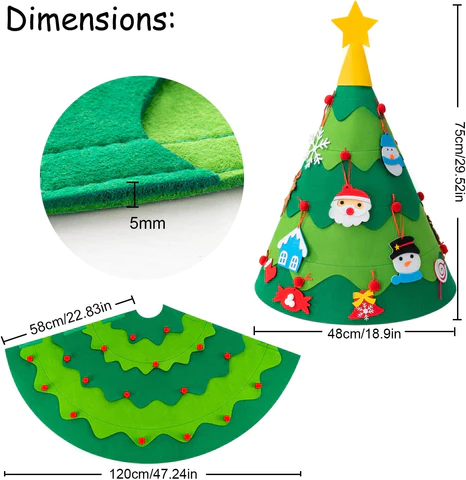 ⭐️ Premium Quality - This tree is made from premium thick felt material with velcro ornaments. Durable. Doesn't take up space. Easy to store away. Usable over and over again. Materials are children-friendly.